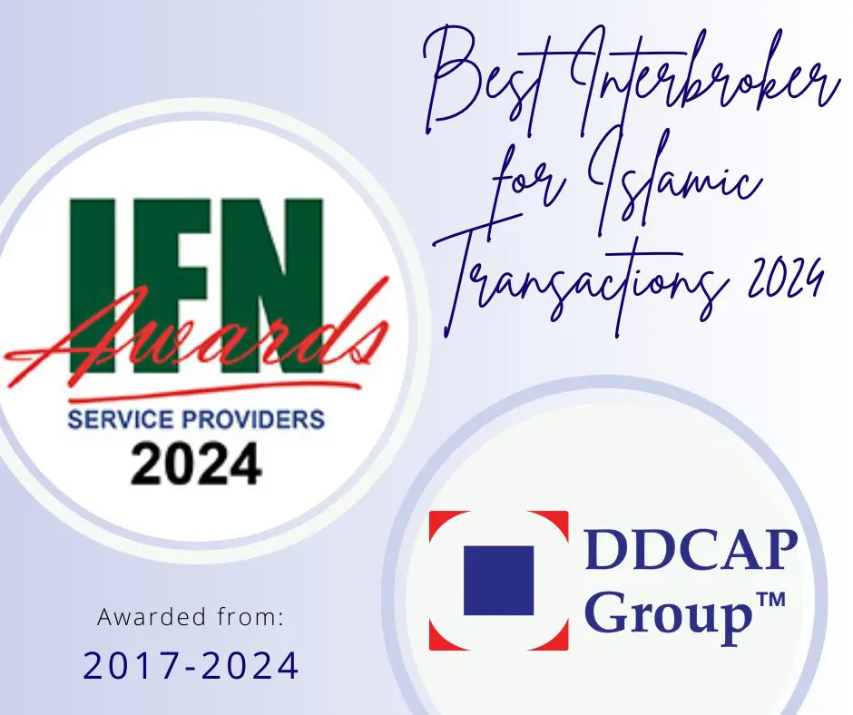 October 2024, London – DDCAP Group™ (“DDCAP”) is delighted to have again been awarded ‘Best Interbroker for Islamic Transactions’ by the Islamic Finance News Service Providers Awards 2024.